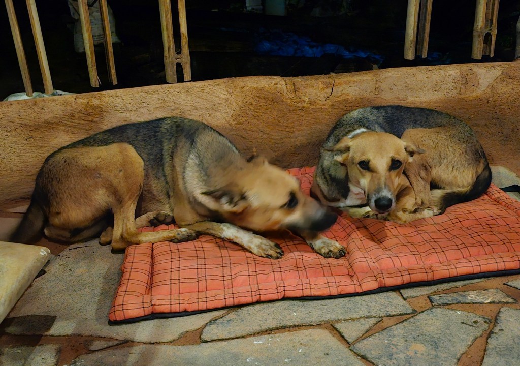 Chaita était également très accommodante avec ma chienne défunte, Cheeru. Cheeru lui lançait souvent des défis, mais Chaita, la guerrière, n’avait rien d’autre à offrir à Cheeru que de l’apaisement. Cependant, c’est cette même Chaita qui est en guerre, parce qu’elle entraîne sa famille dans ce qui me semble être un conflit inutile. Nos voisins ont clôturé leur propriété et y ont enfermé quelques chiens. Je soupçonne que l’enfermement les frustre et qu’ils sont constamment assis à la partie de la clôture d’où ils peuvent regarder et aboyer sur tous les passants. Chaita mord souvent à l’hameçon et se met à crier avec eux. C’est un appel instantané à sa famille. Lorsque son appel arrive, Yaya dort généralement à mes pieds, Iti n’est pas loin et Dude roupille sur un tas de sable. La première à répondre à l’appel est généralement Iti. Yaya se réveille, s’étire et répond comme si elle était consciente que ce n’est pas son combat, mais qu’en bonne joueuse d’équipe, elle se présentera. Dude réagit en fonction de son humeur. Certains jours, il est paresseux et lent à réagir. D’autres jours, il n’attendait que cela et s’élance avec impatience. Je le regarde avec angoisse, car je sais que bientôt je devrai soigner leurs blessures, s’il y en a.